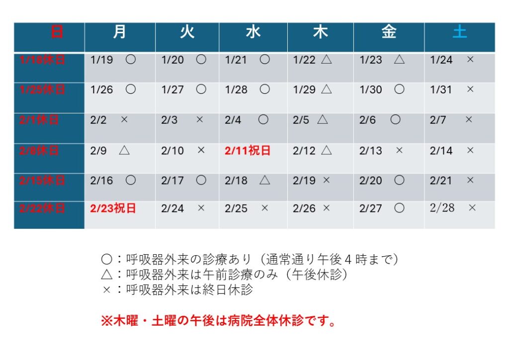 ※土曜日の呼吸器(涼子副院長)外来は、休診です。