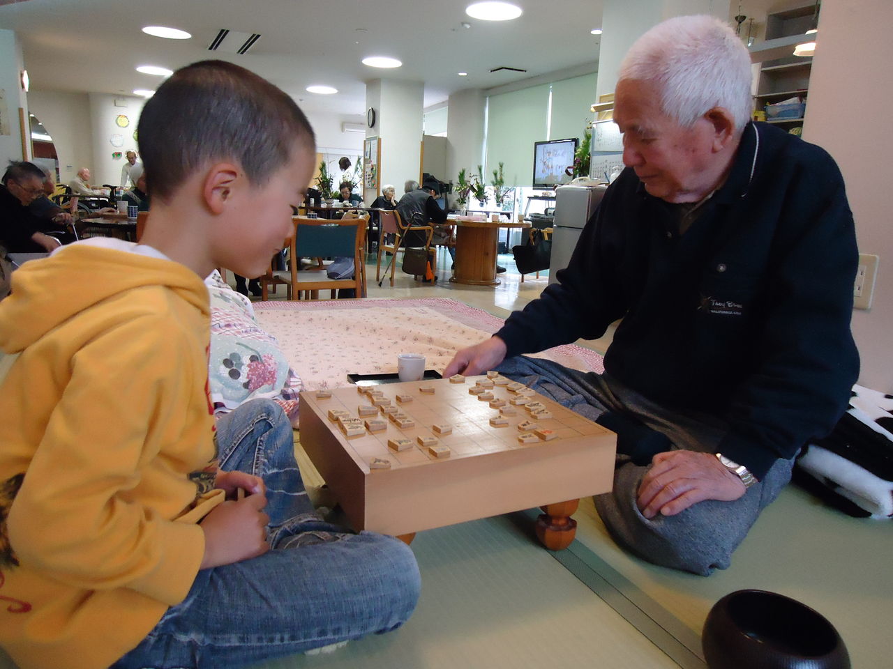 近頃デイケアでは、囲碁の対戦が毎日のように行われています。 職員の子供も参戦し、ご利用者の顔もニッコリしたり 難しい顔になったりし楽しんでいます。