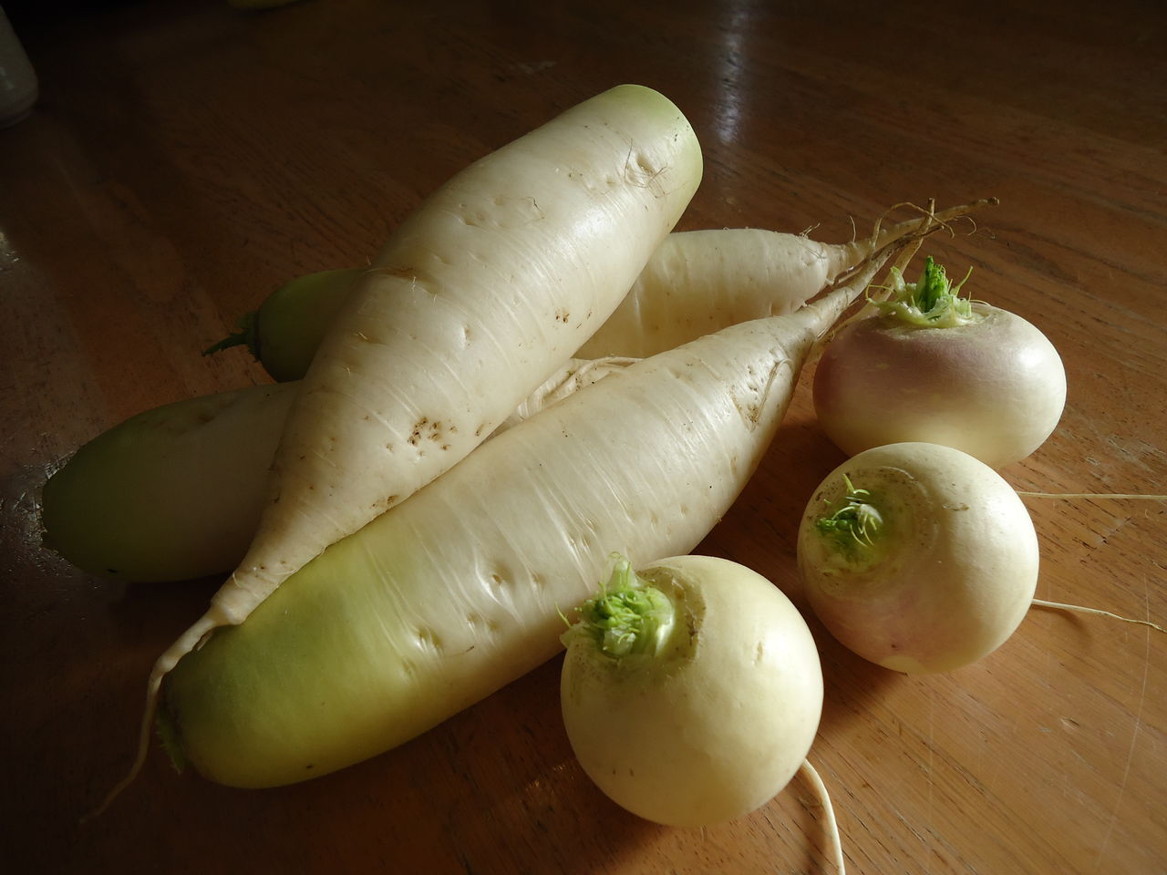 デイケア菜園で、きゅうりに始まり枝豆、そしてムリかもと 思っていた大根・カブが出来ちゃいました