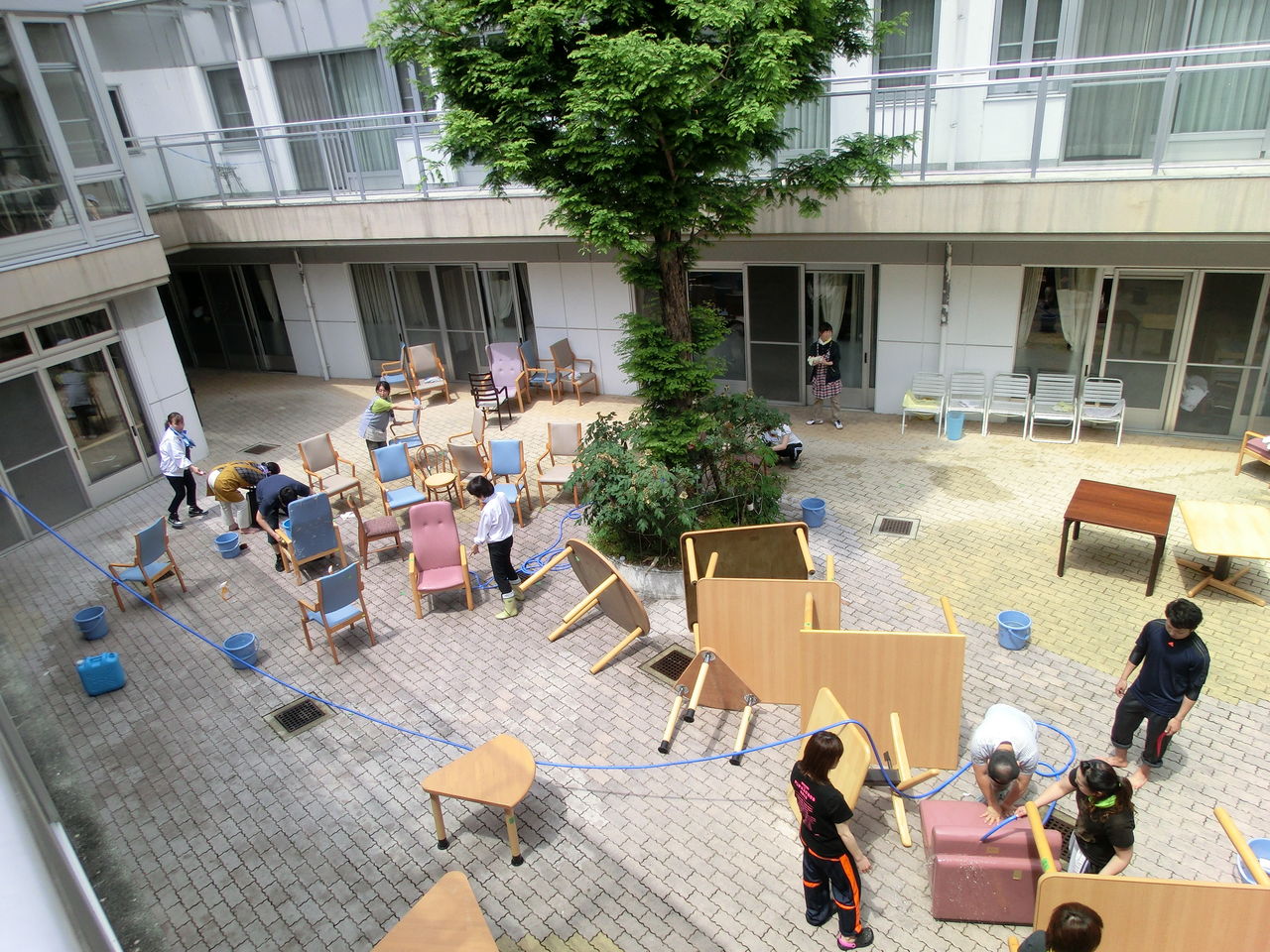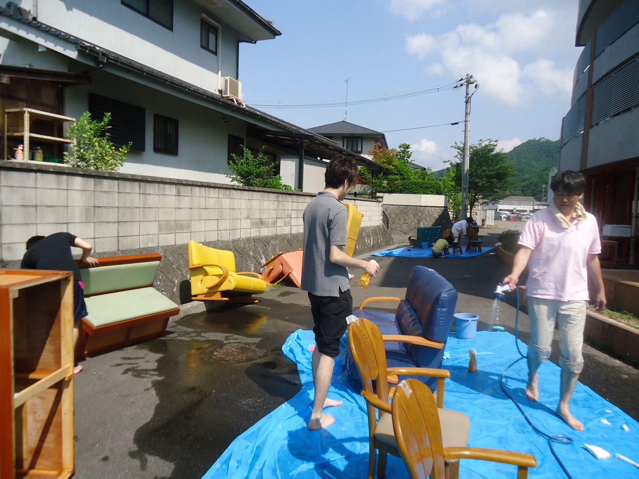 テーブル・椅子・ソファなど、日頃なかなか掃除出来ていない箇所を洗っている様子です。