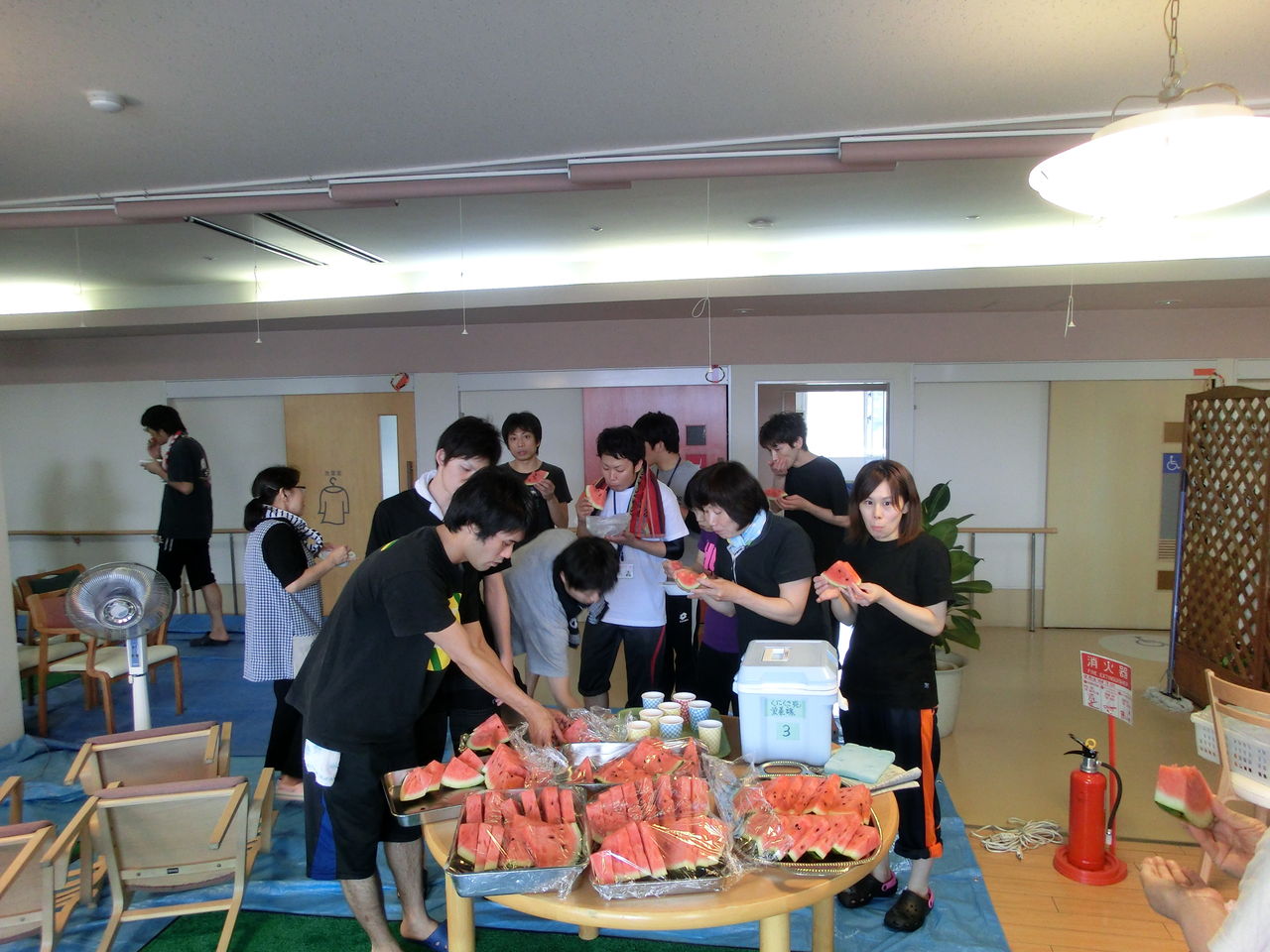 テーブルや椅子を洗い、すっきりした後の甘い西瓜はとてもおしかったです。