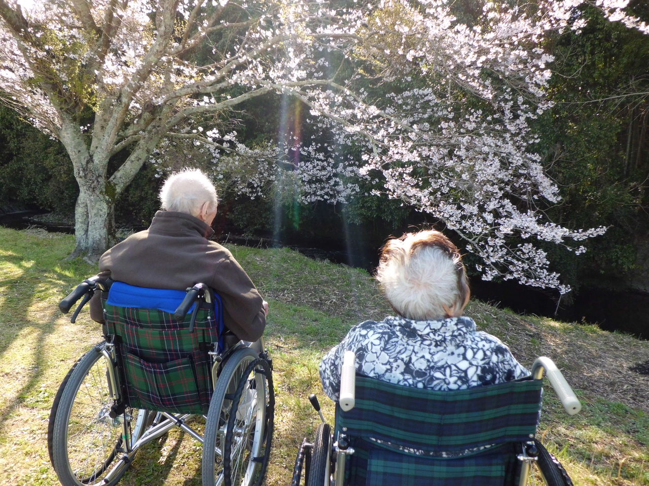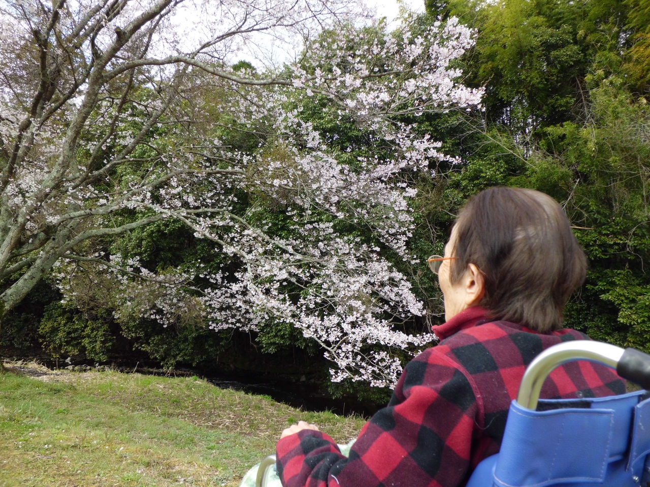 4月初旬にご利用者とともに、施設の裏の川沿いにある桜を見に行きました 今年は昨年より2週間程度も早い開花となりました その時の様子がこちら