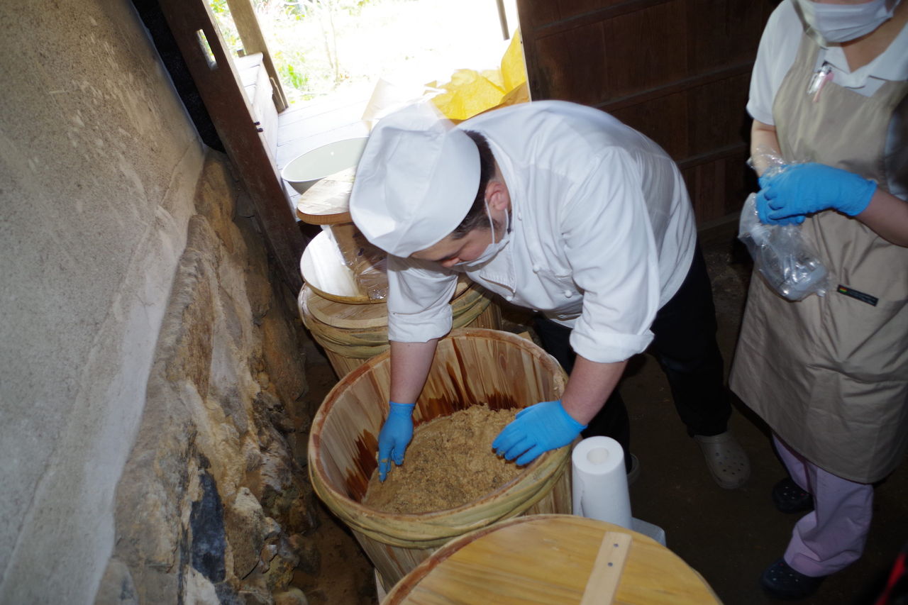 この作業を3ヶ月に1回行うそうですおいしい味噌にするために今後も味噌メンテナンスを頑張りますので楽しみしていて下さい