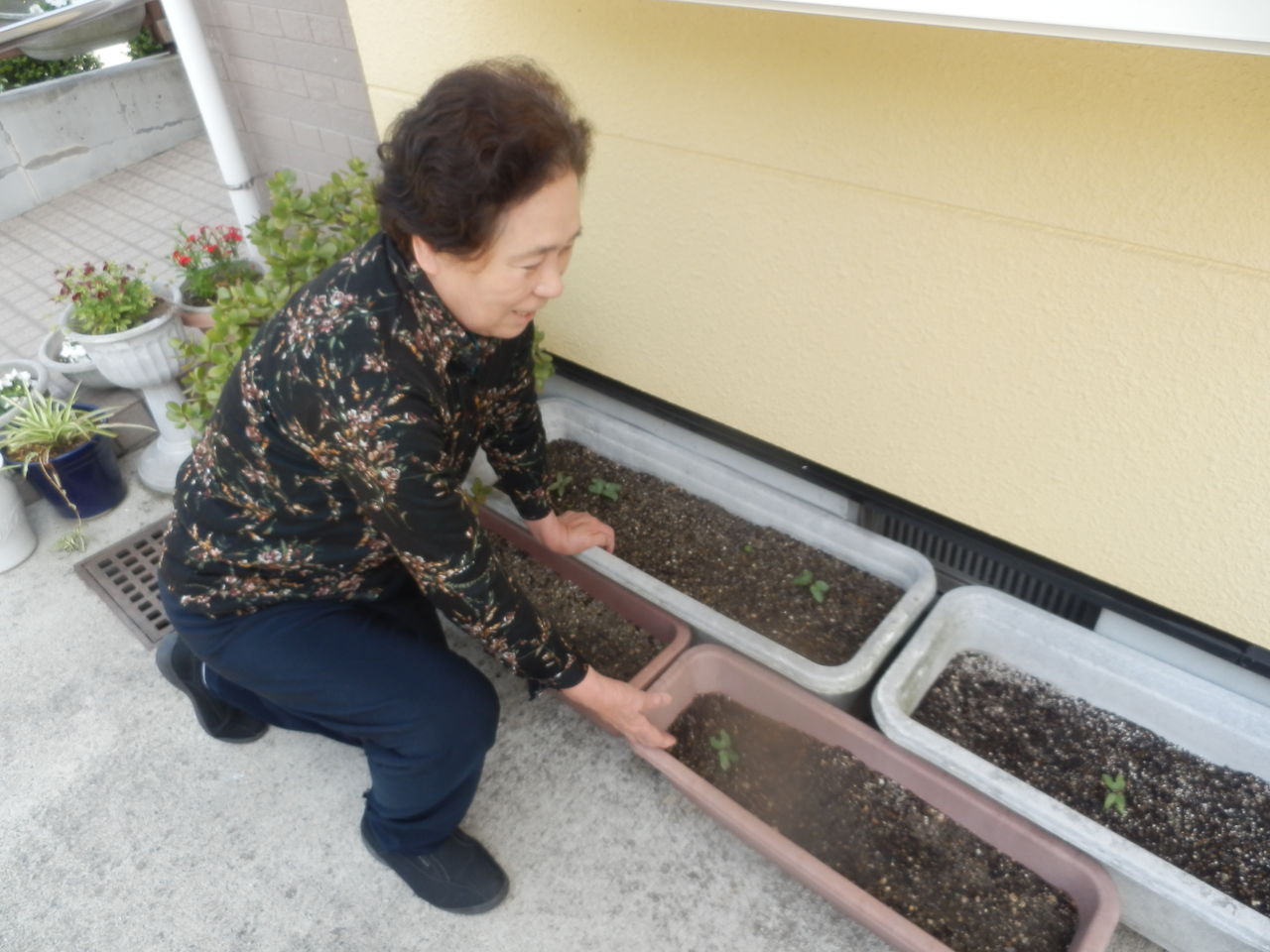 夏の間、グリーンカーテンを作るために、朝顔の種を植えて下さいました