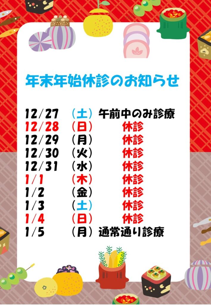 大変勝手ながら、12月28日(日)~1月4日(日)を年末年始の休みとさせて頂きます。